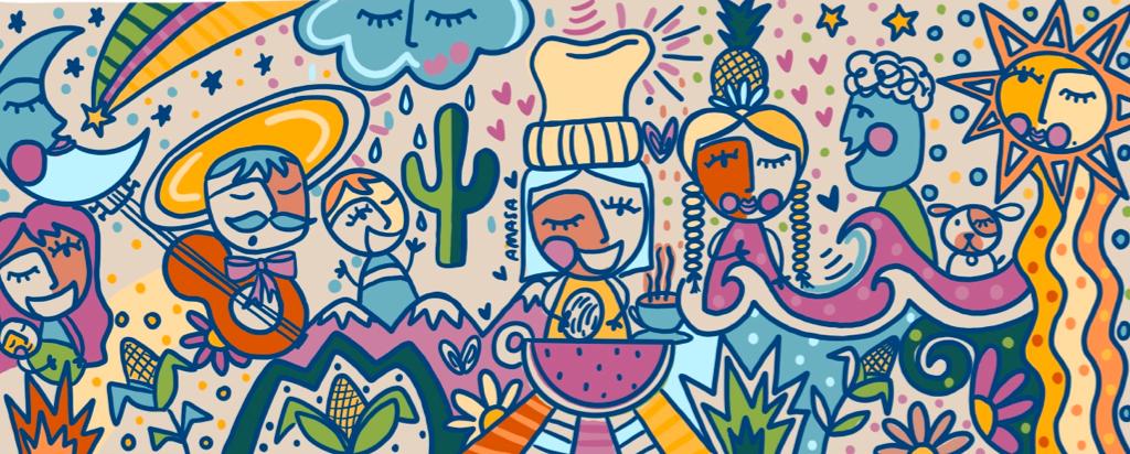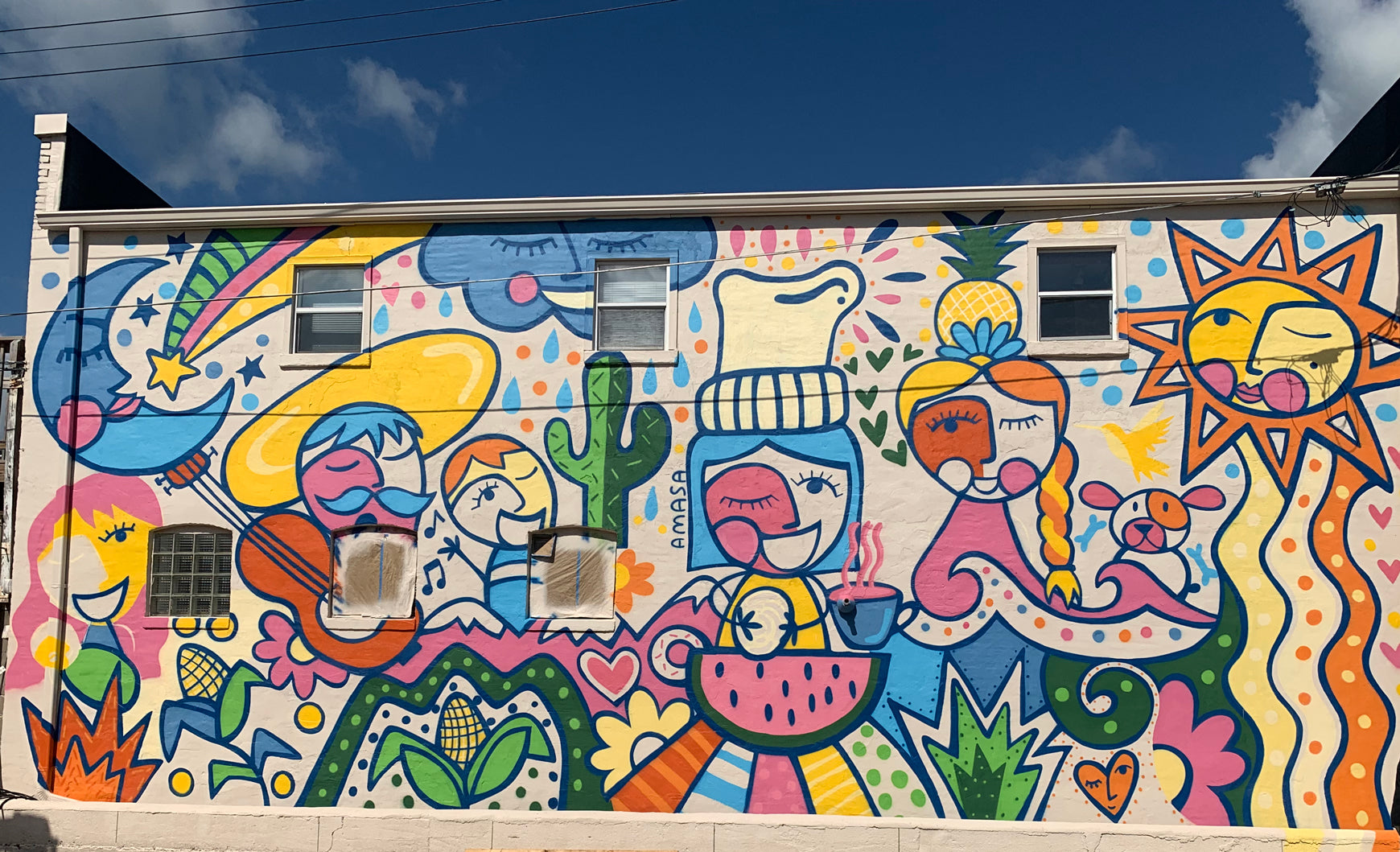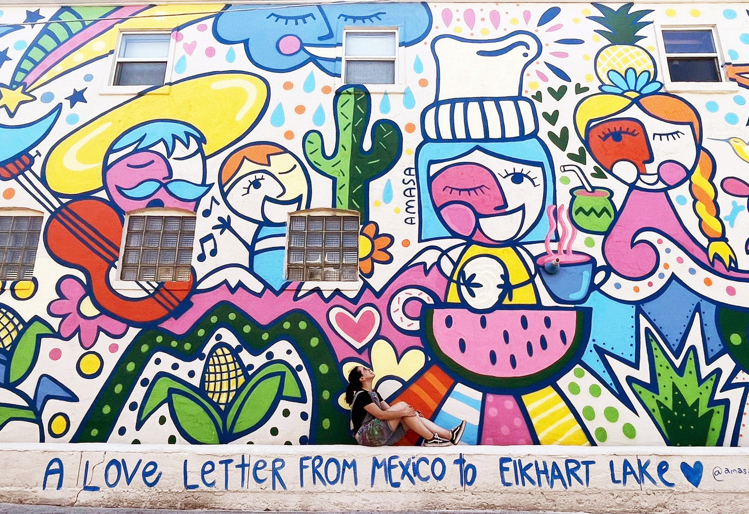 El primer mural donde pude llevar mis colores fuera de México. Este mural de 78 m2 ubicado en Elkhart Lake, Wisconsin. Este mural busca transmitir el amor por México y su comida. De mis murales favoritos gracias al cariño de Karen, Regina las chefs del restaurante y de toda la comunidad que con tanto cariño recibió el mural.