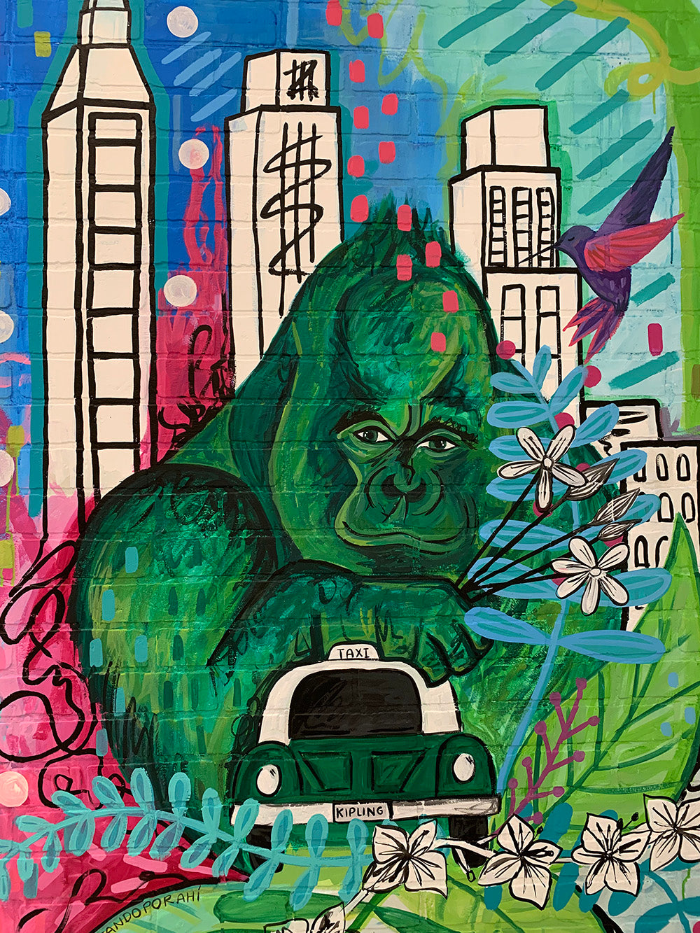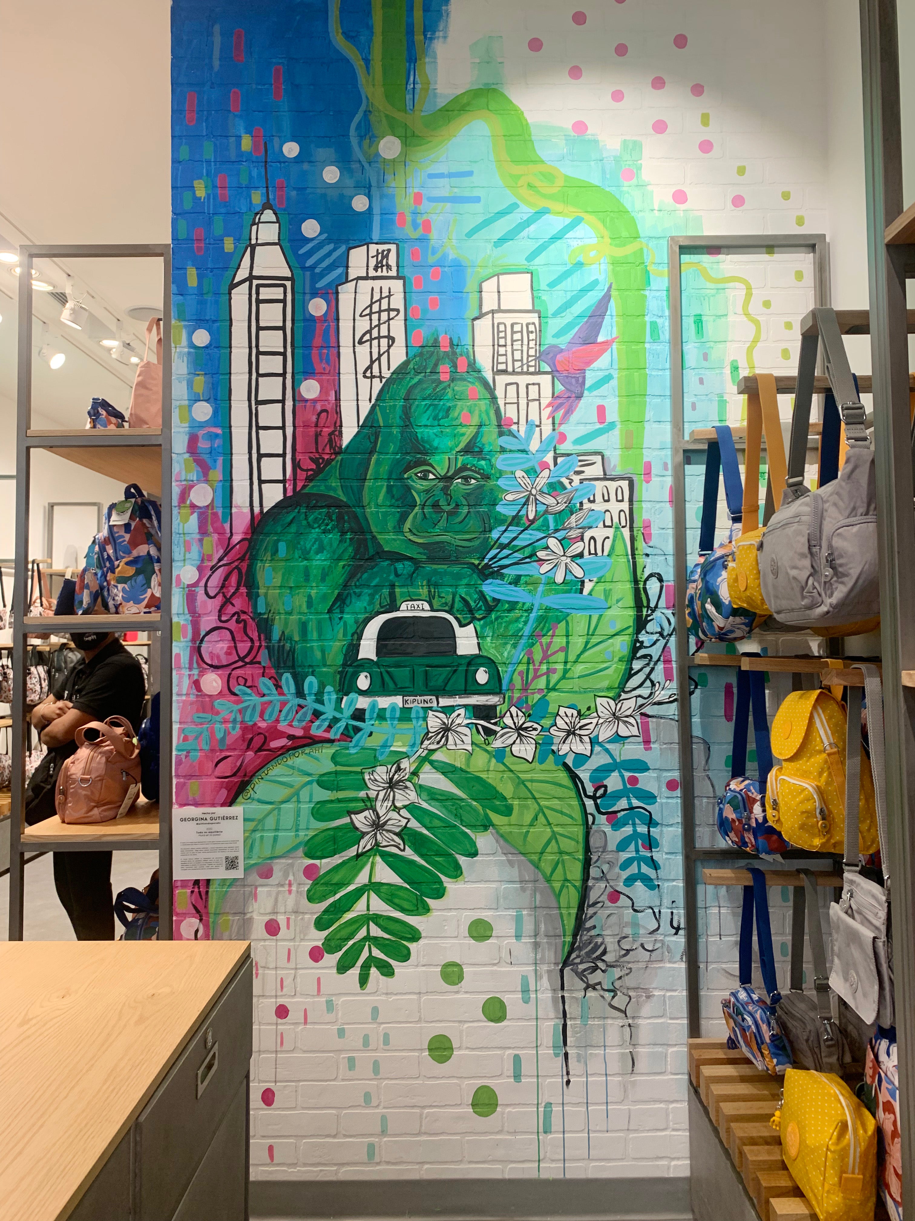 Este Mural fue una colaboración con la marca Kipling en donde pude plasmar mis colores dentro de la tienda que se encuentra en Perisur.