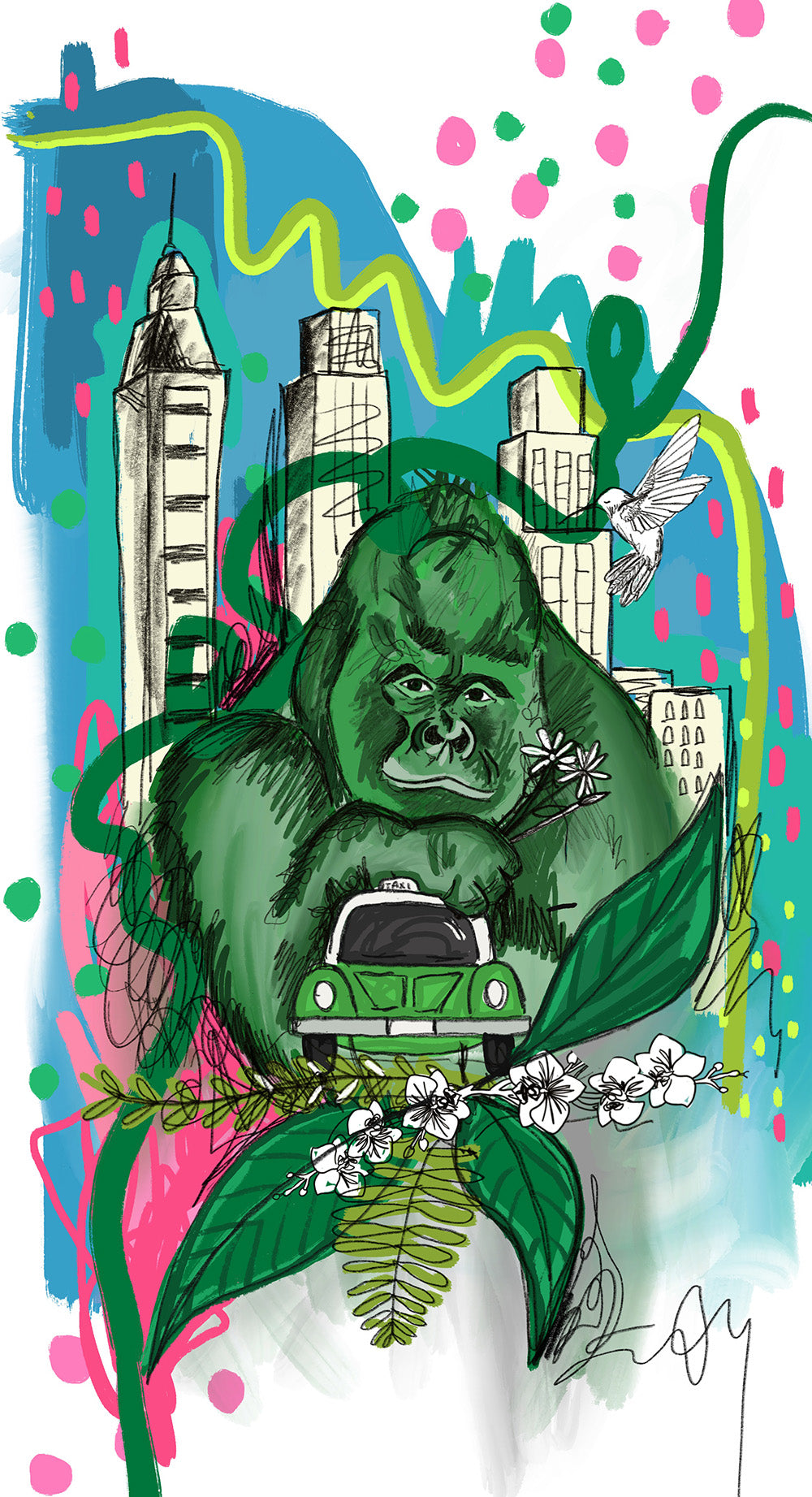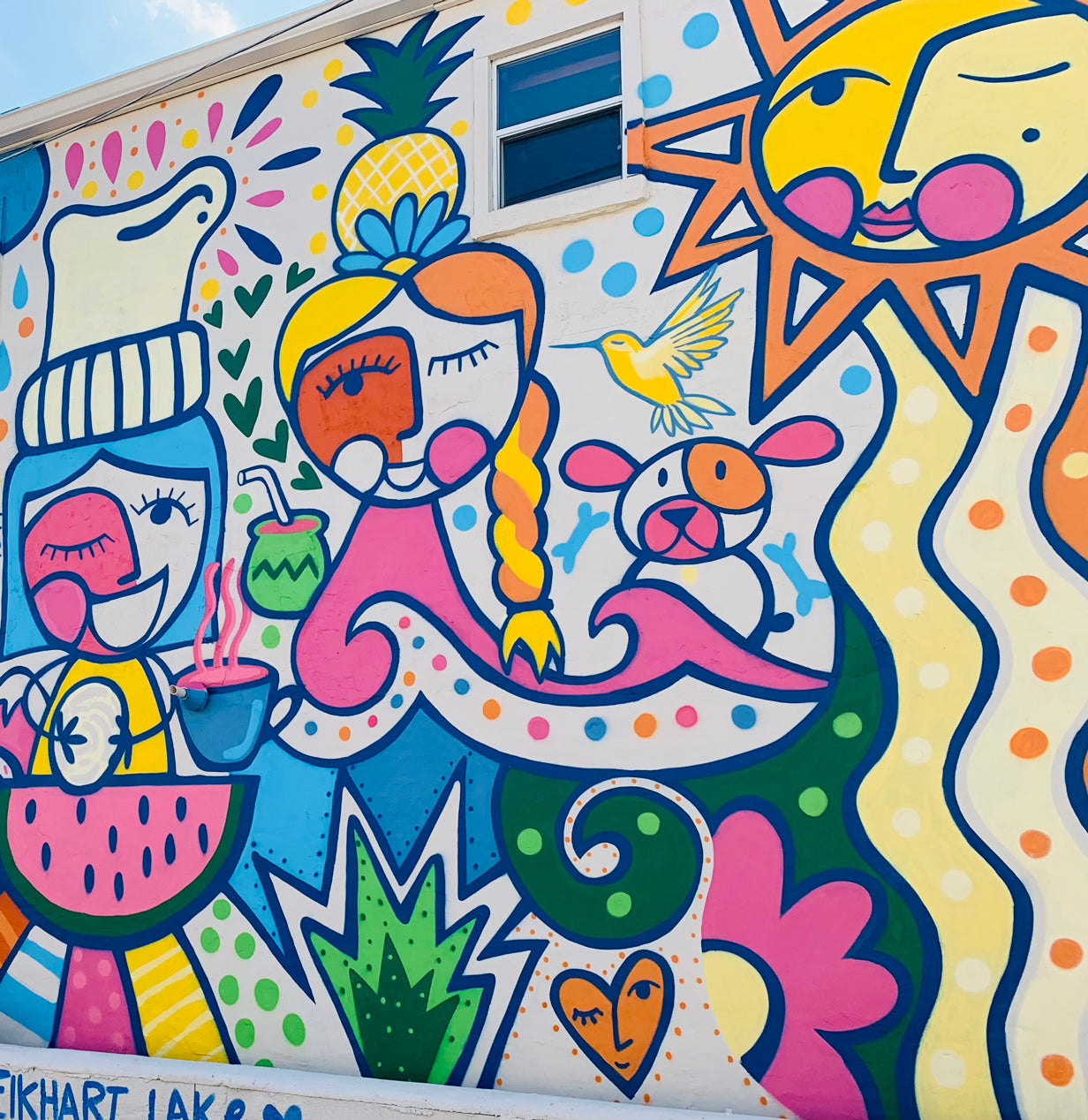 Quise representar el caos y la magia que representan a esta gran ciudad sumando la simplicidad y creatividad que tiene la marca fueron mi inspiración para crear este mural.